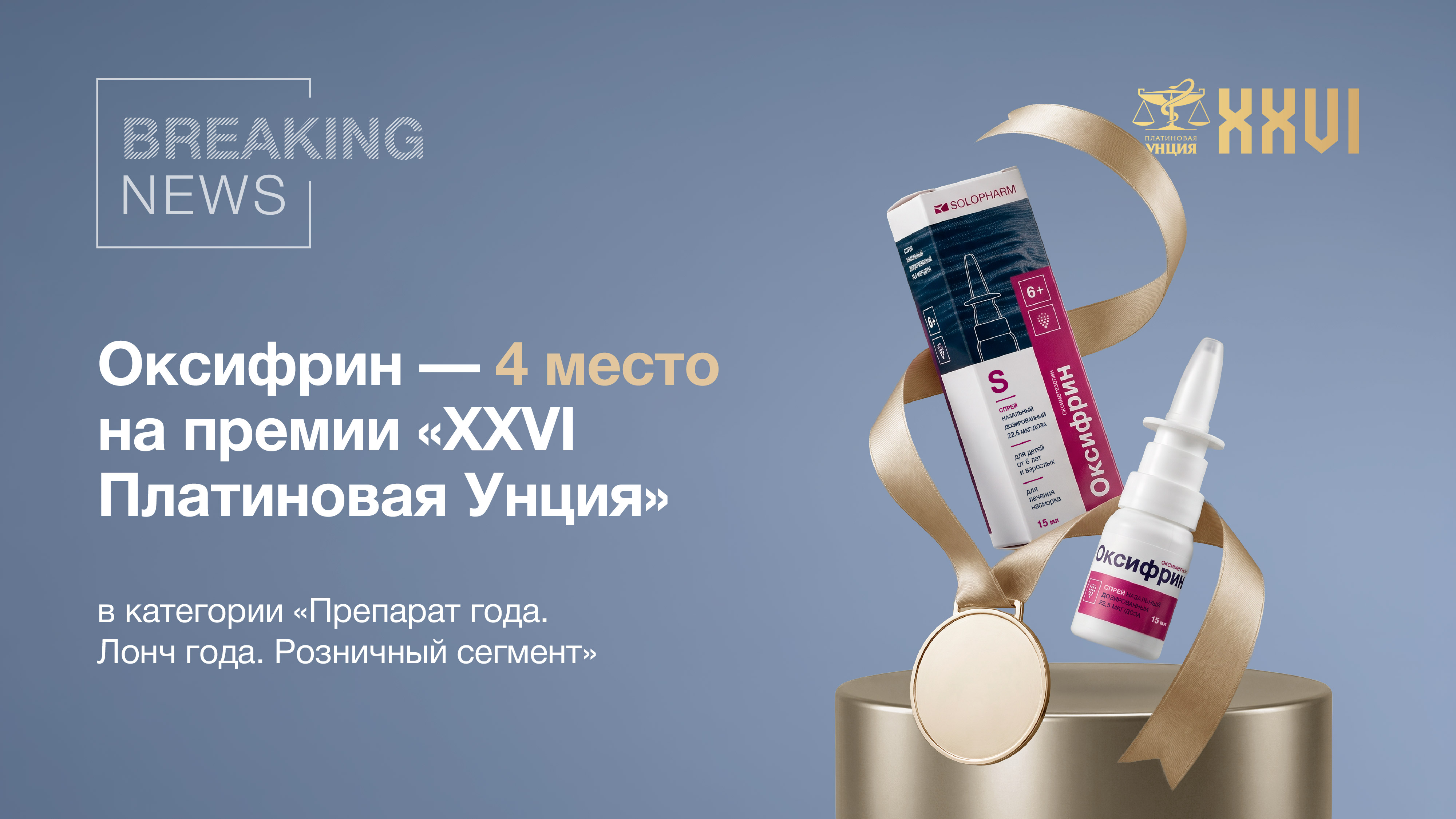 Препарат Оксифрин от компании Solopharm занял 4 место на одной из наиболее авторитетных отраслевых наград – профессиональной премии «XXVI Платиновая Унция» в номинации «Препарат года. Лонч года. Розничный сегмент».